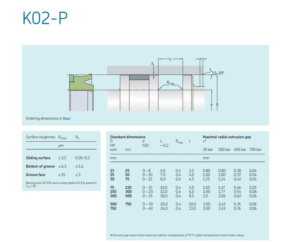 Selo de pistão assimétrico para aplicações padrão, baseado no projeto K01-P.